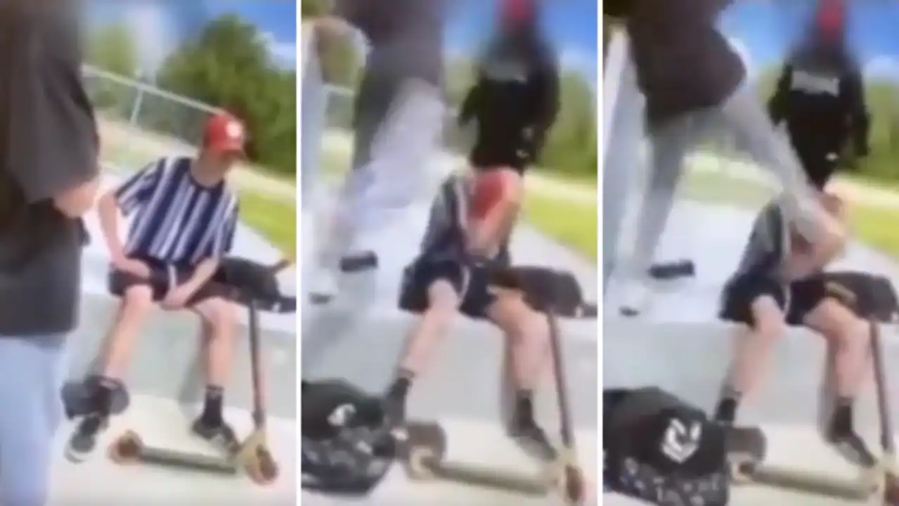 The 18-year-old skateboarder Ryan Caygill was sitting alone in the park but was forced to protect his head as he was repeatedly attacked by two people, reported the Saturday Herald Sun, while a third person filmed the incident.